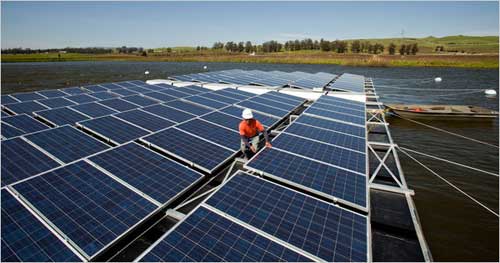 在可再生能源发展最迅猛的美国加利福尼亚州,屋顶、停车场和开阔地上分布着大大小小的太阳能面板。《纽约时报》称,现在一些新兴企业又看中了漂浮水上的浮动式太阳能系统,正在积极推动该技术的发展。